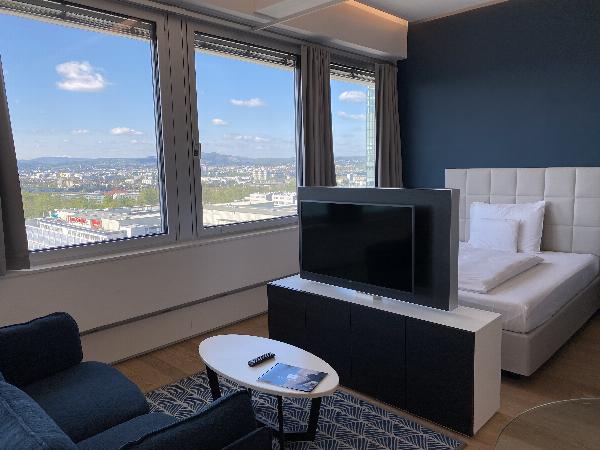 Spektakulärer Ausblick trifft auf luxuriöse Ausstattung: 10 Jahre lang ist dieses ca. 40 m² große Luxusloft über einen der größten österreichischen und deutschen Anbieter von möblierten Premium Serviced Apartments vermietet, inklusive steigender monatlicher Rendite.
